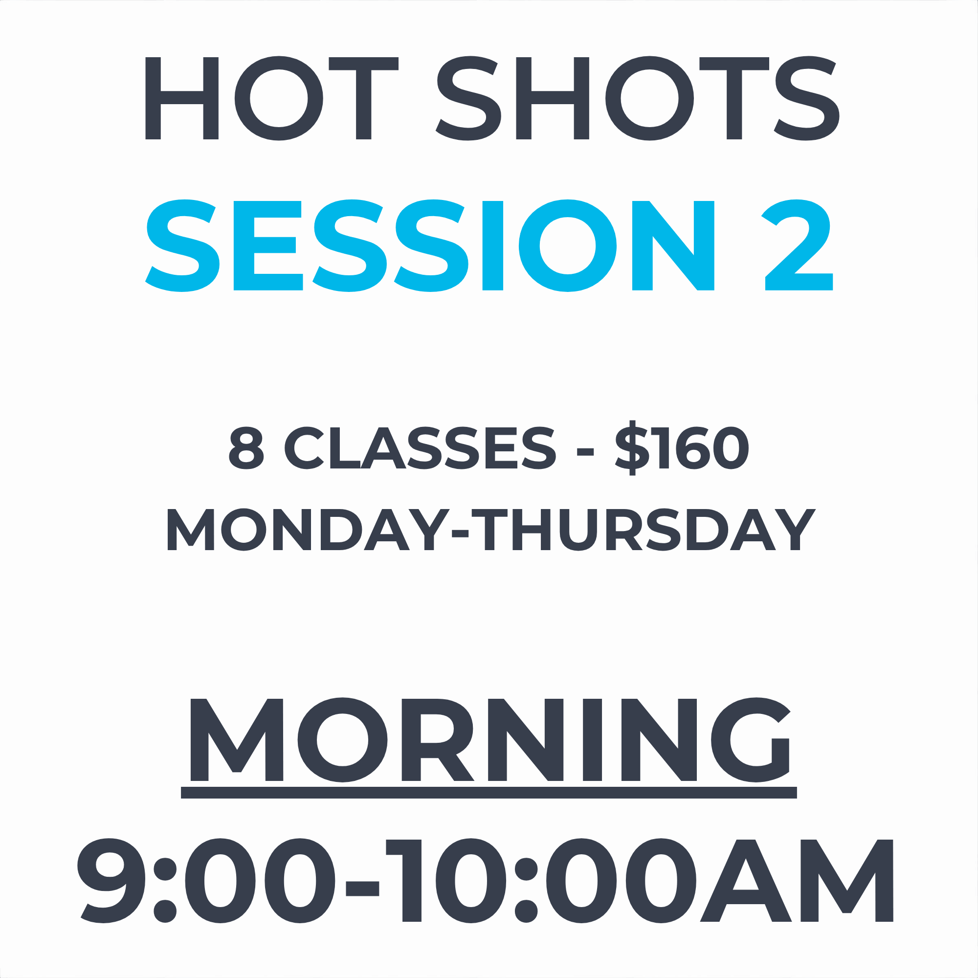 Players can choose a morning class time of 9:00–10:00 AM, with classes running Monday–Thursday. Morning classes are offered in 2–3 week sessions throughout the summer, allowing families to select the weeks that best fit their schedule.